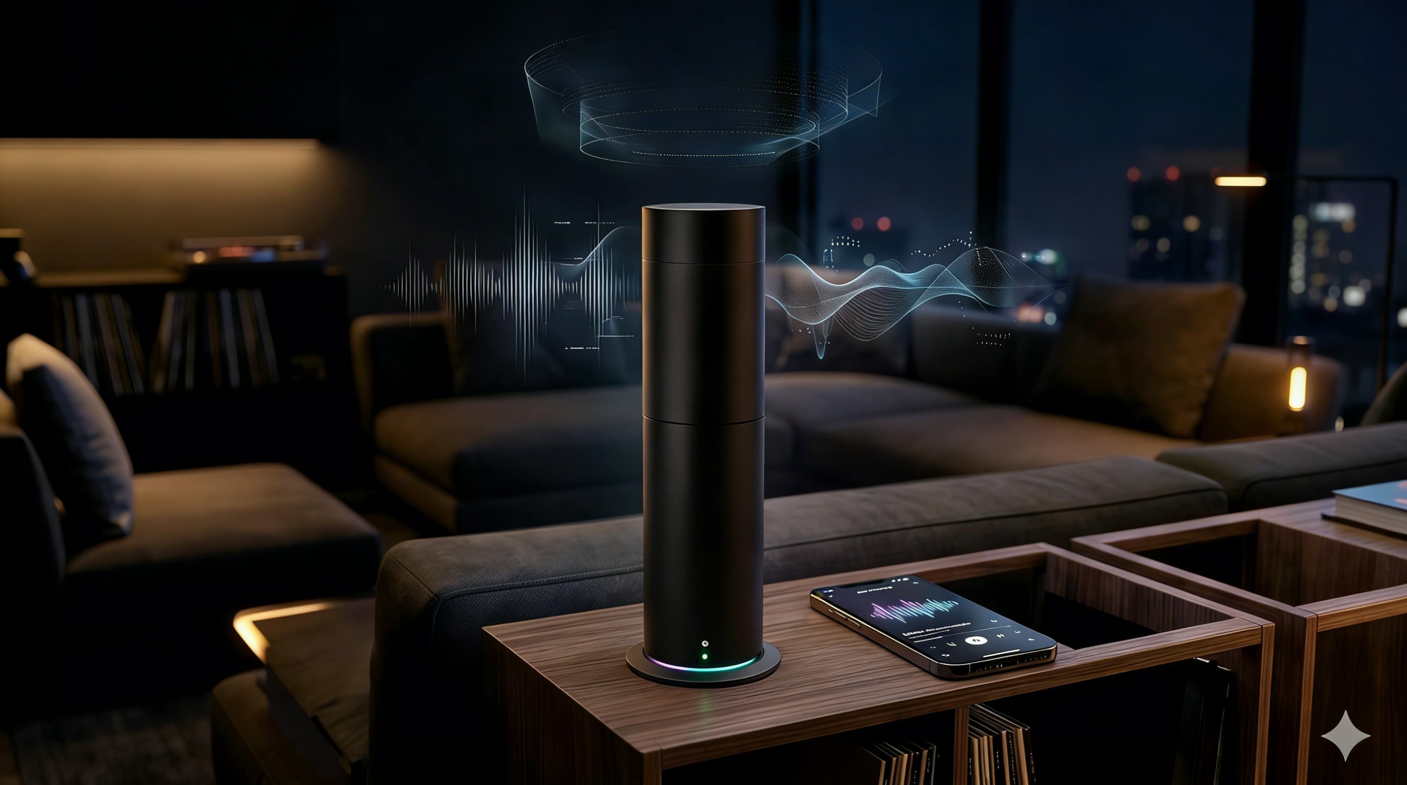 The ultimate companion interface. Seamlessly integrates rhythmic misting, dynamic LED lighting, and spatial audio to create a complete sensory environment.
